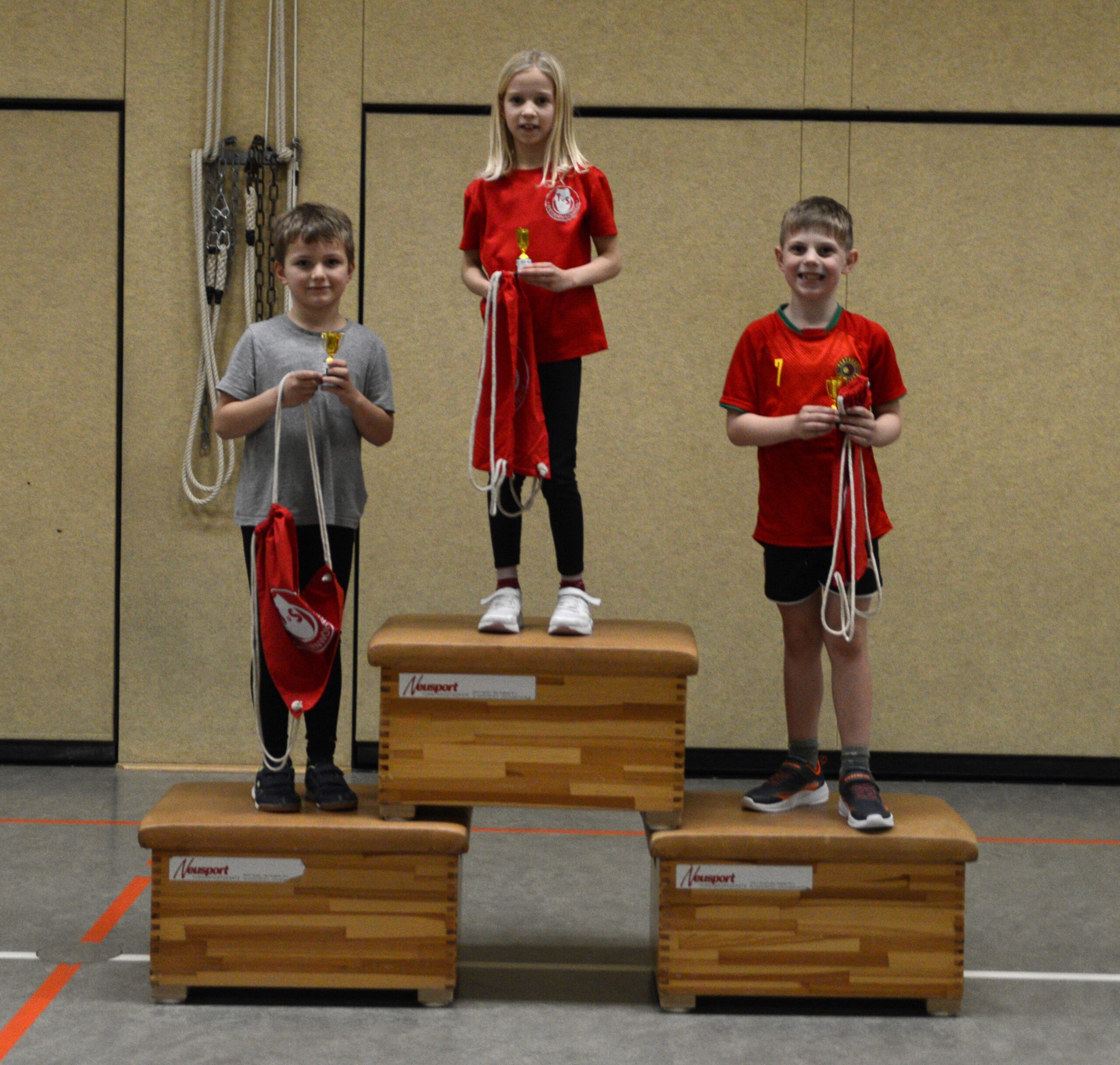 Bei unseren „Minis“ (Kiga und 1. Klasse) belegten Nela Wendte (31x), Mats Maibaum (25x) und Hanni Kurok (24x) Platz 1 bis 3.